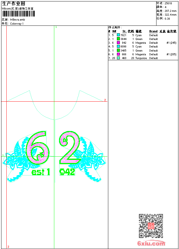 亮片 珠片字母花 emb花版参数: 大小:182.00 KB / 尺寸:322*287[毫米] / 针数:25016针 / 线色:4 / 格式:emb / 版本:7 版带文件需绣花软件方可打开,可配色打印导出各种格式或直接上机绣。如无绣花软件可下载1:1模拟效果图。 PNG图片信息:大小:0.6(MB) /图宽*高:1220x1087(像素) emb下载 1:1图下载 关闭 相关花版: 外星人 胸前几何马赛克 简单小花 衣绳绣条形 毛巾绣火球 绳绣 古典衣领襟 曲线花 衣领 骷髅 衣领 马法拉利ferrari 条码皮带 抽象花 曲线衣 镂空曲线后背 裙条码 简洁小花 裙衣曲线 条码 童花蝴蝶 十字绣条码 衣领 胸几何 胸曲线花 衣领 凤凰 凤凰 网布条码 衣领