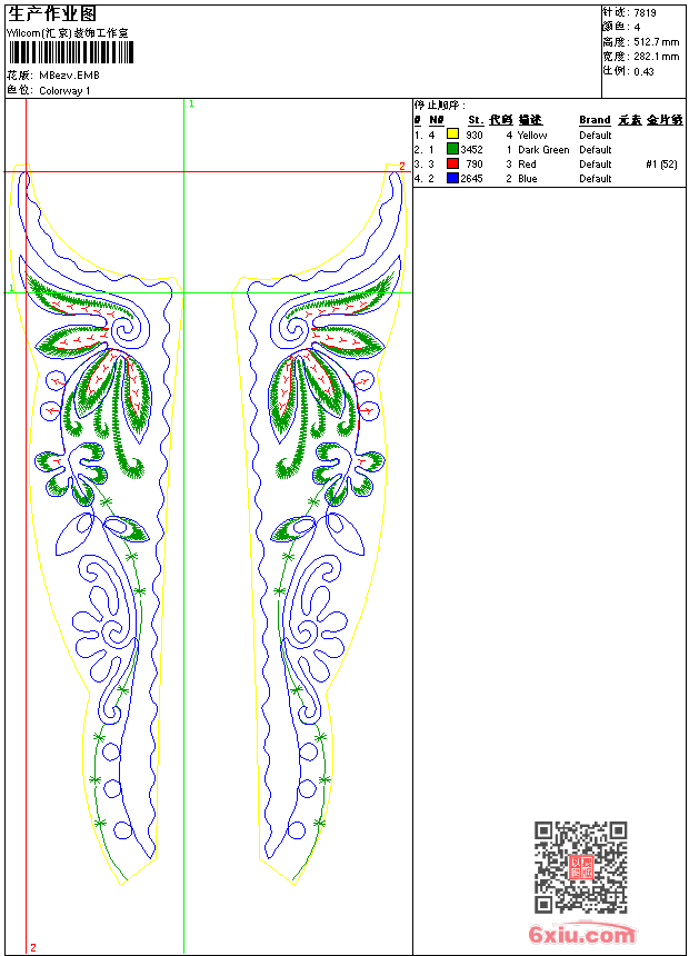 亮片 裤鞋曲线 emb花版参数: 大小:977.00 KB / 尺寸:282*513[毫米] / 针数:7819针 / 线色:4 / 格式:emb / 版本:9 版带文件需绣花软件方可打开,可配色打印导出各种格式或直接上机绣。如无绣花软件可下载1:1模拟效果图。 PNG图片信息:大小:0.5(MB) /图宽*高:1067x1940(像素) emb下载 1:1图下载 收藏本图 关闭 相关花版: 裤袋 台布花条 衣边条 亮片 衣曲线 简单小花 衣下角曲线 亮片 珠片字母花 外星人 胸前几何马赛克 简单小花 衣绳绣条形 毛巾绣火球 绳绣 古典衣领襟 曲线花 衣领 骷髅 衣领 马法拉利ferrari 条码皮带 抽象花 曲线衣 镂空曲线后背 裙条码 简洁小花 裙衣曲线 条码 童花蝴蝶 十字绣条码 衣领