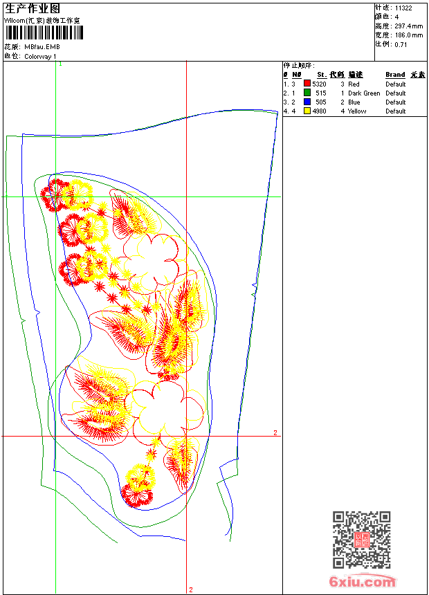 鞋花 emb花版参数: 大小:89.00 KB / 尺寸:186*297[毫米] / 针数:11322针 / 线色:4 / 格式:emb / 版本:9 版带文件需绣花软件方可打开,可配色打印导出各种格式或直接上机绣。如无绣花软件可下载1:1模拟效果图。 PNG图片信息:大小:0.4(MB) /图宽*高:704x1125(像素) emb下载 1:1图下载 收藏本图 关闭 相关花版: 亮片 裤鞋曲线 裤袋 台布花条 衣边条 亮片 衣曲线 简单小花 衣下角曲线 亮片 珠片字母花 外星人 胸前几何马赛克 简单小花 衣绳绣条形 毛巾绣火球 绳绣 古典衣领襟 曲线花 衣领 骷髅 衣领 马法拉利ferrari 条码皮带 抽象花 曲线衣 镂空曲线后背 裙条码 简洁小花 裙衣曲线 条码 童花蝴蝶 十字绣条码