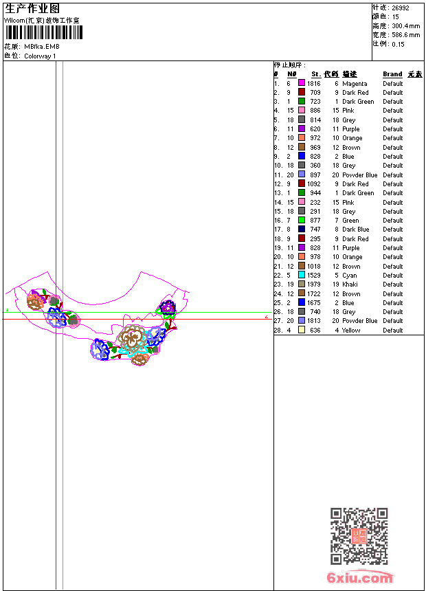 胸前花 emb花版参数: 大小:284.00 KB / 尺寸:587*300[毫米] / 针数:26992针 / 线色:15 / 格式:emb / 版本:9 版带文件需绣花软件方可打开,可配色打印导出各种格式或直接上机绣。如无绣花软件可下载1:1模拟效果图。 PNG图片信息:大小:0.4(MB) /图宽*高:2219x1137(像素) emb下载 1:1图下载 关闭 相关花版: 抽象网布水溶 台布花 鞋裤花 绳绣窗帘 亮片 珠片裤袋 贴布小孩 亮片 女孩人物 亮片 鞋裤花 王冠 匹绣 鞋花 亮片 裤鞋曲线 裤袋 台布花条 衣边条 亮片 衣曲线 简单小花 衣下角曲线 亮片 珠片字母花 外星人 胸前几何马赛克 简单小花 衣绳绣条形 毛巾绣火球 绳绣 古典衣领襟 曲线花 衣领 骷髅 衣领
