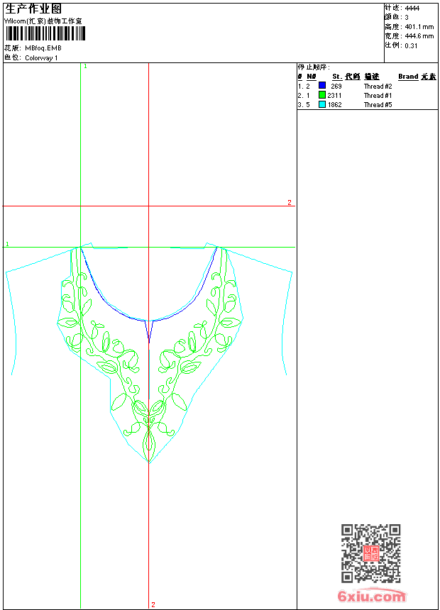衣领扫 emb花版参数: 大小:2.73 MB / 尺寸:445*401[毫米] / 针数:4444针 / 线色:3 / 格式:emb / 版本:9 版带文件需绣花软件方可打开,可配色打印导出各种格式或直接上机绣。如无绣花软件可下载1:1模拟效果图。 PNG图片信息:大小:0.2(MB) /图宽*高:1682x1518(像素) emb下载 1:1图下载 关闭 相关花版: 骷髅 胸前花 抽象网布水溶 台布花 鞋裤花 绳绣窗帘 亮片 珠片裤袋 贴布小孩 亮片 女孩人物 亮片 鞋裤花 王冠 匹绣 鞋花 亮片 裤鞋曲线 裤袋 台布花条 衣边条 亮片 衣曲线 简单小花 衣下角曲线 亮片 珠片字母花 外星人 胸前几何马赛克 简单小花 衣绳绣条形 毛巾绣火球 绳绣 古典衣领襟 曲线花 衣领