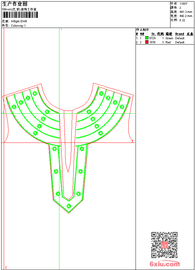 衣领 emb花版参数: 大小:106.50 KB / 尺寸:442*441[毫米] / 针数:11607针 / 线色:2 / 格式:emb / 版本:7 版带文件需绣花软件方可打开,可配色打印导出各种格式或直接上机绣。如无绣花软件可下载1:1模拟效果图。 PNG图片信息:大小:0.5(MB) /图宽*高:1673x1670(像素) emb下载 1:1图下载 关闭 相关花版: 花简单 衣领 猫 胸襟 裙摆 简单花 传统花 家纺大花 台布 窗帘盘带 裙腰条 鞋裤花 狮标 衣领摆 童花 轮船 亮片 珠片鸟贴布 裙摆 匹绣 条码 曲线装饰 喜洋洋 曲线装饰 花经典 花简单 花简单裤脚 狗卡通 亮片 蝴蝶珠片 通用曲线裤鞋衣 条码