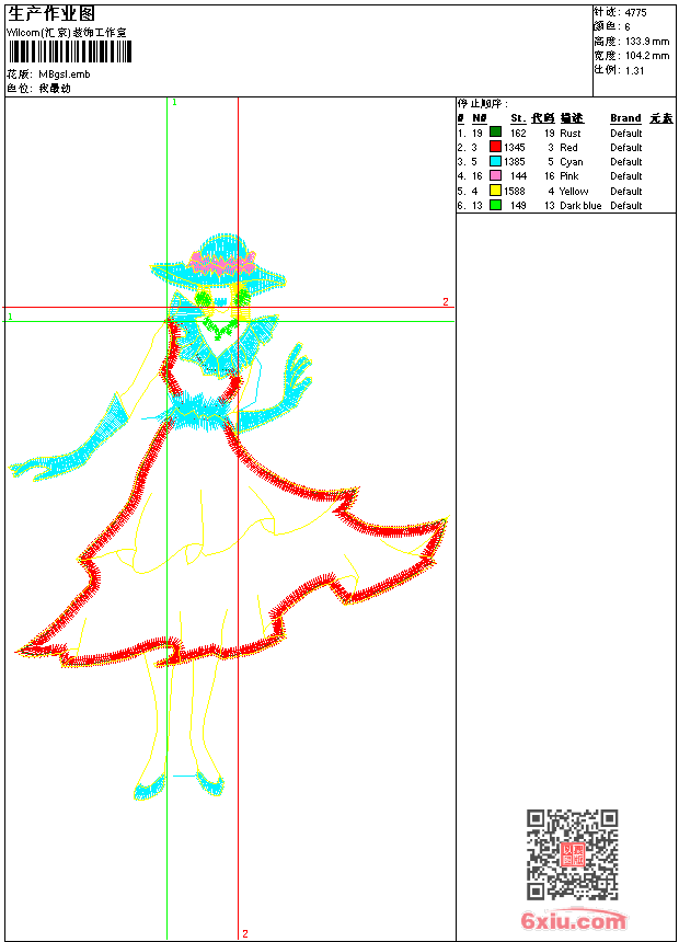 女孩贴布 emb花版参数: 大小:57.50 KB / 尺寸:104*134[毫米] / 针数:4775针 / 线色:6 / 格式:emb / 版本:9 版带文件需绣花软件方可打开,可配色打印导出各种格式或直接上机绣。如无绣花软件可下载1:1模拟效果图。 PNG图片信息:大小:0.1(MB) /图宽*高:395x507(像素) emb下载 1:1图下载 收藏本图 关闭 相关花版: 简洁花 装饰台布方形 装饰台布方形 熊贴布 狗标 熊贴布 简单小花 绳绣花 龙 衣领 花简单 衣领 猫 胸襟 裙摆 简单花 传统花 家纺大花 台布 窗帘盘带 裙腰条 鞋裤花 狮标 衣领摆 童花 轮船 亮片 珠片鸟贴布 裙摆 匹绣 条码