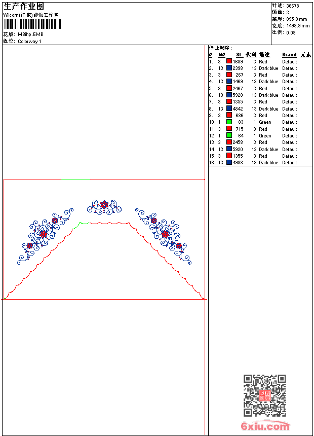 - emb花版参数: 大小:142.00 KB / 尺寸:1500*896[毫米] / 针数:36678针 / 线色:3 / 格式:emb / 版本:7