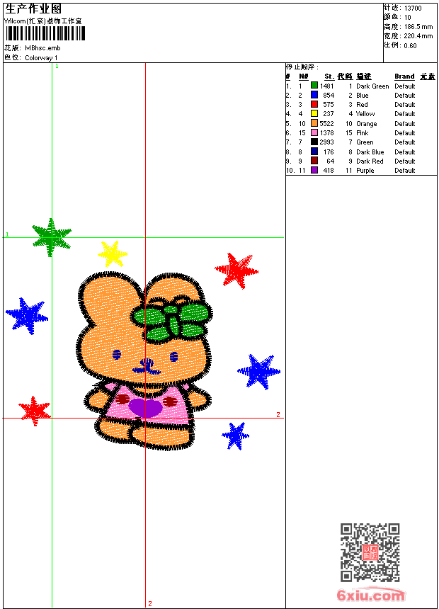 kitty猫 emb花版参数: 大小:88.50 KB / 尺寸:220*186[毫米] / 针数:13700针 / 线色:10 / 格式:emb / 版本:e2 版带文件需绣花软件方可打开,可配色打印导出各种格式或直接上机绣。如无绣花软件可下载1:1模拟效果图。 PNG图片信息:大小:0.5(MB) /图宽*高:834x706(像素) emb下载 1:1图下载 关闭 相关花版: 匹布曲线 衣花条 亮片 牛仔裤蝴蝶珠片 小花条 线条衣 网布花边 贴布女孩 抽象曲线衣裤 老虎tigers 裤曲线 衣领 鹰 骷髅 亮片 简单花条 鞋曲线 裙摆 衣花简单 简单雕孔 台布条 亮片 珠片人脸 章仔 鞋花简单 亮片 珠片花 骷髅 米老鼠 亮片 三合一绳绣 牛仔裤花 衣摆花边 桌布 手指