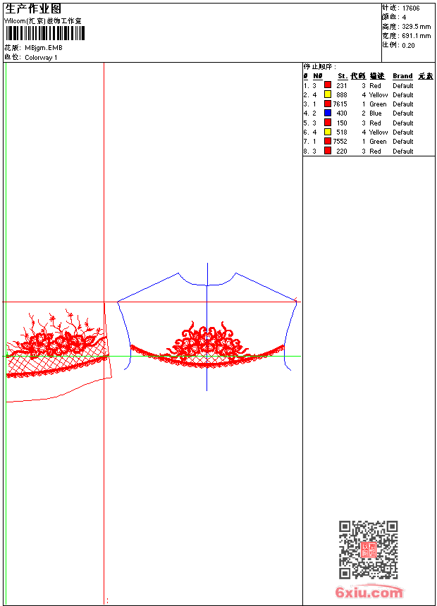 衣摆 emb花版参数: 大小:172.50 KB / 尺寸:691*330[毫米] / 针数:17606针 / 线色:4 / 格式:emb / 版本:e2 版带文件需绣花软件方可打开,可配色打印导出各种格式或直接上机绣。如无绣花软件可下载1:1模拟效果图。 PNG图片信息:大小:0.7(MB) /图宽*高:2614x1247(像素) emb下载 1:1图下载 关闭 相关花版: 球队标 螃蟹 简单小花 简单小花 玫瑰藤条 简单花 简单曲线 台布 曲线衣 亮片 珠片衣领胸曲线 简单花 匹绣 亮片 珠片线条裤 简单曲线 指纹曲线 亮片 珠片皇冠 亮片 珠片裤花简单 衣领 曲线铜钱 玫瑰藤条 裤蝴蝶花 花朵家纺 简单小花匹绣 复杂抽象裤脚条码 衣领中东国外 亮片 珠片面具 简单玫瑰花 简单小花朵 毛巾绣大红花 台布