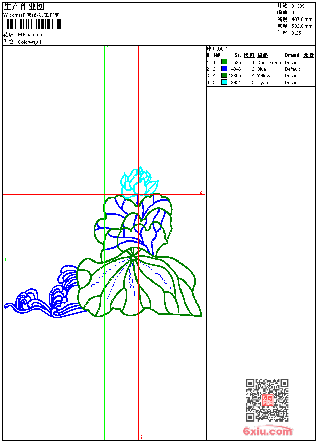 荷花 emb花版参数: 大小:223.50 KB / 尺寸:533*407[毫米] / 针数:31389针 / 线色:4 / 格式:emb / 版本:e2 版带文件需绣花软件方可打开,可配色打印导出各种格式或直接上机绣。如无绣花软件可下载1:1模拟效果图。 PNG图片信息:大小:0.9(MB) /图宽*高:2015x1540(像素) emb下载 1:1图下载 关闭 相关花版: 衣领布贴 衣领 鹰 毛巾绳绣 猫 米老鼠 圆圈 曲线 鸟 章标T恤 衣领 简单线条 鹿鸭子诺亚方舟 绳绣曲线 花简单 衣摆条 花简单 章标 章标 鸟 裙摆 条码 条码 花简单 胸前镂空 亮片 珠片鞋帽嘴唇 裤袋 裤脚风车屋 向日葵条码 简单童花 裙摆