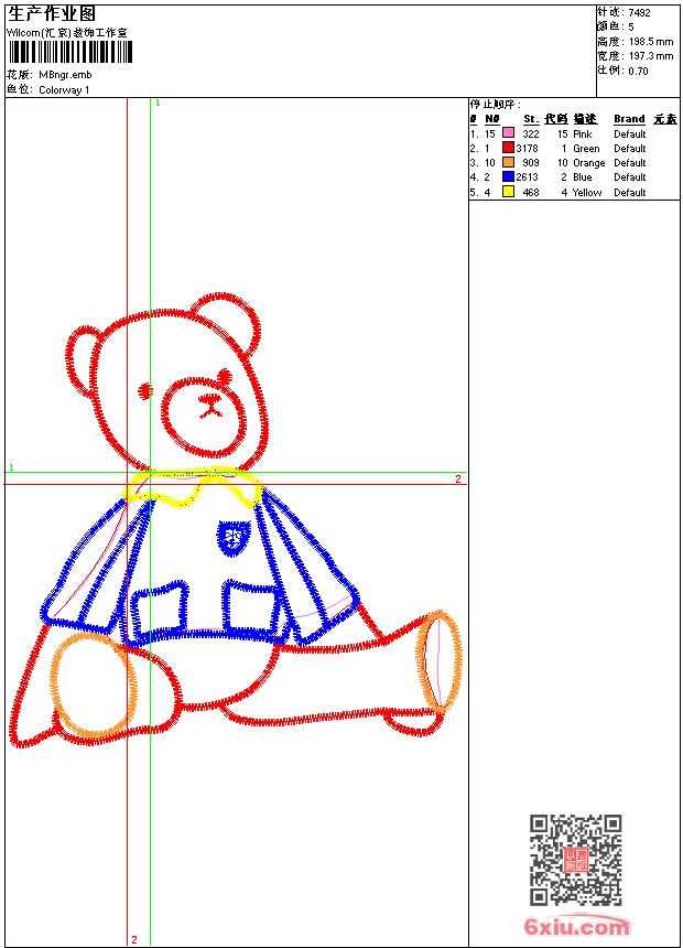 熊 emb花版参数: 大小:88.50 KB / 尺寸:197*199[毫米] / 针数:7492针 / 线色:5 / 格式:emb / 版本:e2 版带文件需绣花软件方可打开,可配色打印导出各种格式或直接上机绣。如无绣花软件可下载1:1模拟效果图。 PNG图片信息:大小:0.3(MB) /图宽*高:747x751(像素) emb下载 1:1图下载 收藏本图 关闭 相关花版: 拖拉机 花条 亮片 章标珠片 蝴蝶 猫 亮片 珠片提包蝴蝶椰树 向日葵 衣领 美女头像 亮片 蝴蝶面具珠片 米奇 花条形 蜂窝花 熊字母 简单线条 衣领 汽车熊 绳绣 曲线裤 装饰 熊珠片 圣诞老人 花叶 美女 雕刻线条 啄木鸟口袋 曲线条 曲线 亮片 珠片裤曲线 裙衣摆