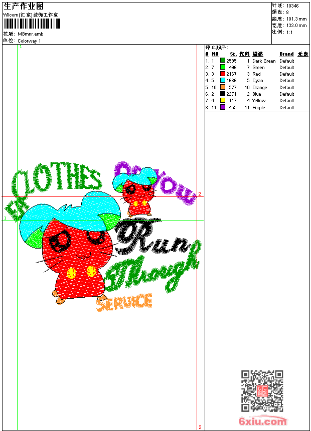 兔子 emb花版参数: 大小:78.50 KB / 尺寸:133*101[毫米] / 针数:10346针 / 线色:8 / 格式:emb / 版本:e2 版带文件需绣花软件方可打开,可配色打印导出各种格式或直接上机绣。如无绣花软件可下载1:1模拟效果图。 PNG图片信息:大小:0.2(MB) /图宽*高:504x384(像素) emb下载 1:1图下载 关闭 相关花版: 衣领 猪八戒 曲线花 心形 衣领 童花 亮片 简单花 珠片 亮片 衣领 珠片 童花 曲线 曲线 衣领 条码 亮片 国旗 珠片 简单花条 鼠 松鼠 人物 美女 蝴蝶 鹿角 衣领 曲线 花 衣领 曲线 简单花 亮片 蝴蝶 珠片 匹绣 鸟 壁虎 壁画 花条 花条 亮片 曲线 珠片 曲线 条 曲线