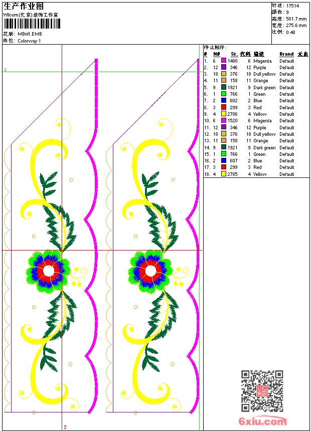 花条 emb花版参数: 大小:74.00 KB / 尺寸:276*502[毫米] / 针数:17514针 / 线色:9 / 格式:emb / 版本:7 版带文件需绣花软件方可打开,可配色打印导出各种格式或直接上机绣。如无绣花软件可下载1:1模拟效果图。 PNG图片信息:大小:0.8(MB) /图宽*高:1043x1898(像素) emb下载 1:1图下载 收藏本图 关闭 相关花版: 鸟 花 骷髅 王冠 圆圈 曲线 曲线 卡通鸭子 曲线对称 十字绣装饰 简单花 简单花 桌布 心形 抽象 狮标 猫 衣摆 狗 兔子 衣领 猪八戒 曲线花 心形 衣领 童花 亮片 简单花 珠片 亮片 衣领 珠片 童花 曲线 曲线 衣领 条码 亮片 国旗 珠片