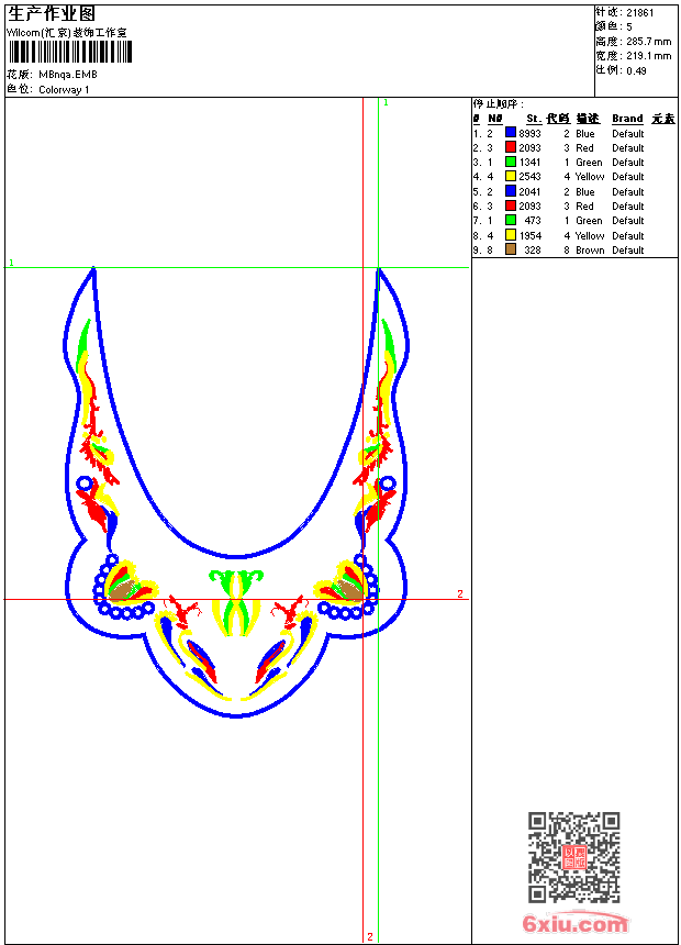 衣领 emb花版参数: 大小:128.00 KB / 尺寸:219*286[毫米] / 针数:21861针 / 线色:5 / 格式:emb / 版本:7 版带文件需绣花软件方可打开,可配色打印导出各种格式或直接上机绣。如无绣花软件可下载1:1模拟效果图。 PNG图片信息:大小:0.2(MB) /图宽*高:829x1081(像素) emb下载 1:1图下载 收藏本图 关闭 相关花版: 鸟 亮片 蝴蝶 珠片 童花 章标 苹果 梨子 亮片 珠片 曲线 水溶 衣领 鱼 鸡 台布 公鸡 裤花 裙摆 兔子 狗 史努比 雪人 绳绣 毛巾绣 叶子 花条 鸟 花 骷髅 王冠 圆圈 曲线 曲线 卡通鸭子 曲线对称 十字绣装饰 简单花 简单花 桌布 心形 抽象 狮标