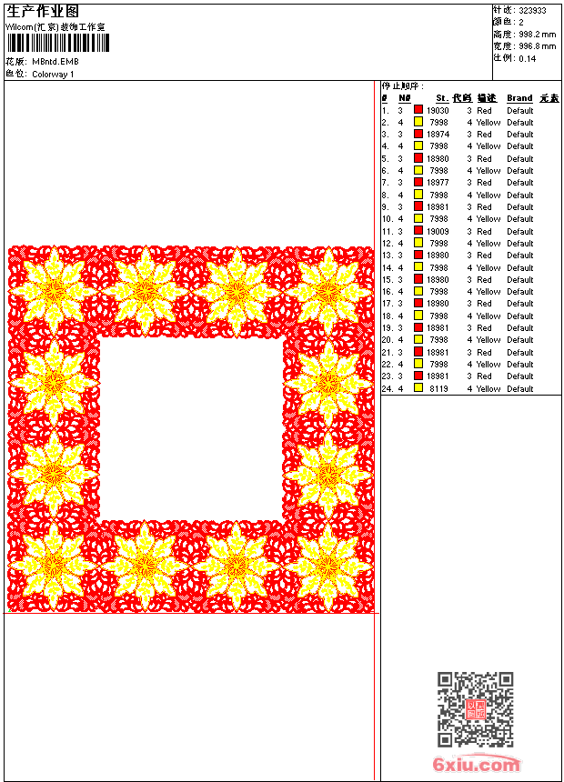 桌布 条边 emb花版参数: 大小:1.78 MB / 尺寸:997*998[毫米] / 针数:323933针 / 线色:2 / 格式:emb / 版本:7 版带文件需绣花软件方可打开,可配色打印导出各种格式或直接上机绣。如无绣花软件可下载1:1模拟效果图。 PNG图片信息:大小:13.3(MB) /图宽*高:3771x3776(像素) emb下载 1:1图下载 关闭 相关花版: 蝴蝶 衣领 鸟 亮片 蝴蝶 珠片 童花 章标 苹果 梨子 亮片 珠片 曲线 水溶 衣领 鱼 鸡 台布 公鸡 裤花 裙摆 兔子 狗 史努比 雪人 绳绣 毛巾绣 叶子 花条 鸟 花 骷髅 王冠 圆圈 曲线 曲线 卡通鸭子 曲线对称 十字绣装饰 简单花 简单花 桌布