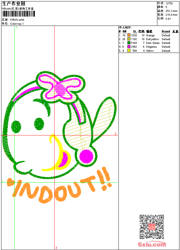 卡通 emb花版参数: 大小:94.00 KB / 尺寸:219*253[毫米] / 针数:12752针 / 线色:5 / 格式:emb / 版本:9 版带文件需绣花软件方可打开,可配色打印导出各种格式或直接上机绣。如无绣花软件可下载1:1模拟效果图。 PNG图片信息:大小:0.5(MB) /图宽*高:828x958(像素) emb下载 1:1图下载 关闭 相关花版: 衣领 花边 米老鼠 简单花 蝴蝶 衣领 鼠 卡通 简单花 树 毛巾绣 鸭子 超人 大花 中国风 窗帘 台布 简单花 条码 kitty 简单花 亮片 绳绣珠片 花条 兔 花条 桌布 条边 蝴蝶 衣领 鸟 亮片 蝴蝶 珠片 童花 章标 苹果 梨子 亮片 珠片 曲线 水溶 衣领