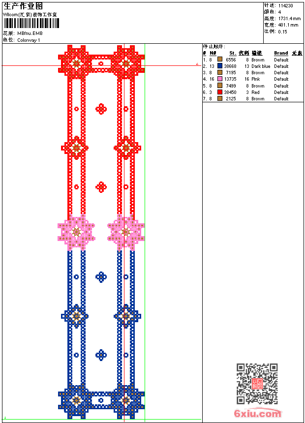 台布 emb花版参数: 大小:340.50 KB / 尺寸:401*1731[毫米] / 针数:114230针 / 线色:4 / 格式:emb / 版本:7 版带文件需绣花软件方可打开,可配色打印导出各种格式或直接上机绣。如无绣花软件可下载1:1模拟效果图。 PNG图片信息:大小:4.8(MB) /图宽*高:1518x6549(像素) emb下载 1:1图下载 关闭 相关花版: 大花 牡丹花 亮片 条码 领花 衣摆 长颈鹿 骷髅 条码 猫 亮片 蝴蝶 裤 珠片 米奇 飞机 口袋 领 骑马 台布 翅膀 蜜蜂 花朵 裤袋 胸花 抽象曲线 领 羽毛 裙摆 几何 禾穗 章 衣领 条码 亮片 珠片裤 童花 胸花