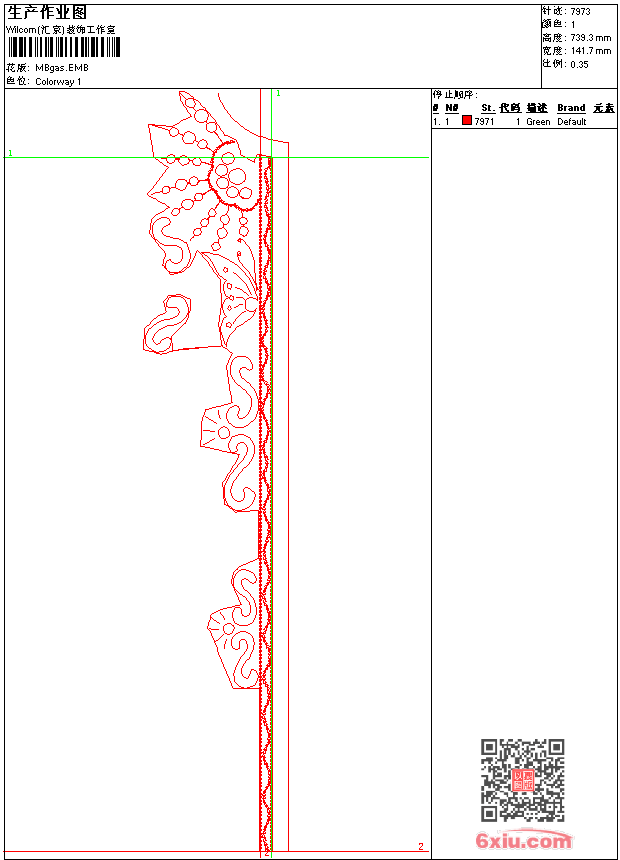 领 emb花版参数: 大小:88.50 KB / 尺寸:142*739[毫米] / 针数:7973针 / 线色:1 / 格式:emb / 版本:e2 版带文件需绣花软件方可打开,可配色打印导出各种格式或直接上机绣。如无绣花软件可下载1:1模拟效果图。 PNG图片信息:大小:0.3(MB) /图宽*高:536x2797(像素) emb下载 1:1图下载 关闭 相关花版: 花朵 条码 骷髅 亮片 几何 抽象 圆环 花朵 花朵 台布 条码 家纺大花 大花 条码 胸花 条码 抽象 美女 心形 花朵 亮片 鹰珠片 亮片 字母 台布 大花 牡丹花 亮片 条码 领花 衣摆 长颈鹿 骷髅 条码 猫 亮片 蝴蝶 裤 珠片 米奇 飞机 口袋