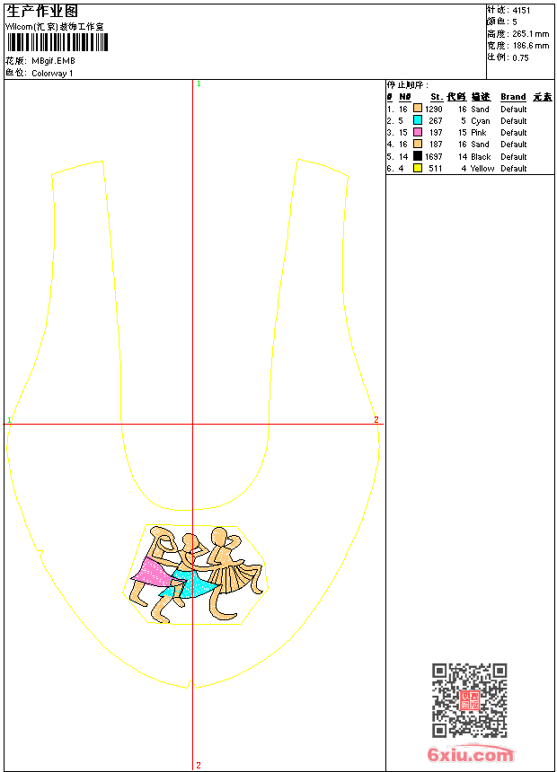 跳舞 emb花版参数: 大小:35.00 KB / 尺寸:187*265[毫米] / 针数:4151针 / 线色:5 / 格式:emb / 版本:9 版带文件需绣花软件方可打开,可配色打印导出各种格式或直接上机绣。如无绣花软件可下载1:1模拟效果图。 PNG图片信息:大小:0.1(MB) /图宽*高:706x1003(像素) emb下载 1:1图下载 关闭 相关花版: 窗帘 网格 领花 亮片 条码 窗帘 领花 条码 裙摆 领 花朵 条码 骷髅 亮片 几何 抽象 圆环 花朵 花朵 台布 条码 家纺大花 大花 条码 胸花 条码 抽象 美女 心形 花朵 亮片 鹰珠片 亮片 字母 台布 大花 牡丹花 亮片 条码