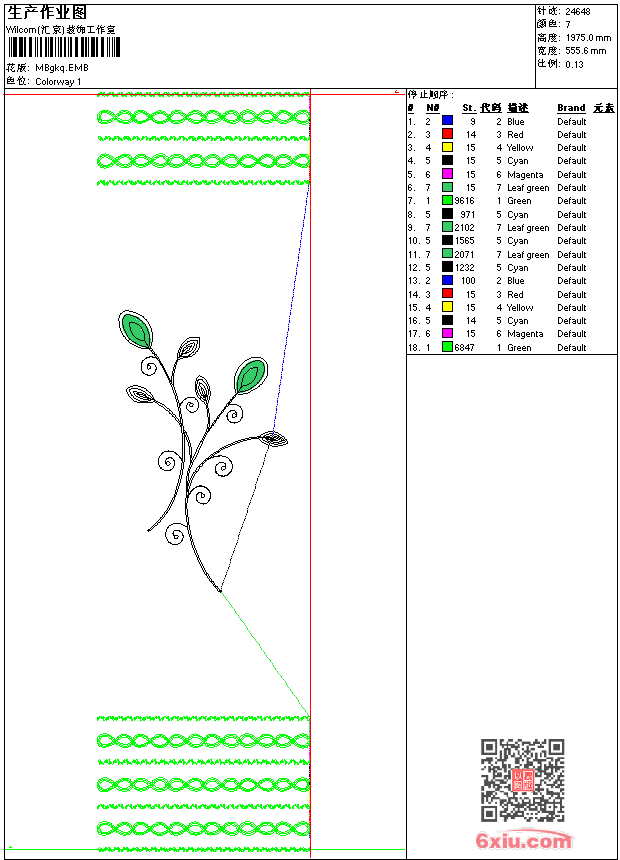 窗帘 emb花版参数: 大小:125.00 KB / 尺寸:556*1975[毫米] / 针数:24648针 / 线色:7 / 格式:emb / 版本:e2 版带文件需绣花软件方可打开,可配色打印导出各种格式或直接上机绣。如无绣花软件可下载1:1模拟效果图。 PNG图片信息:大小:1.4(MB) /图宽*高:2102x7471(像素) emb下载 1:1图下载 关闭 相关花版: 骑马 抽象曲线 亮片 裤 跳舞 窗帘 网格 领花 亮片 条码 窗帘 领花 条码 裙摆 领 花朵 条码 骷髅 亮片 几何 抽象 圆环 花朵 花朵 台布 条码 家纺大花 大花 条码 胸花 条码 抽象 美女 心形 花朵 亮片 鹰珠片