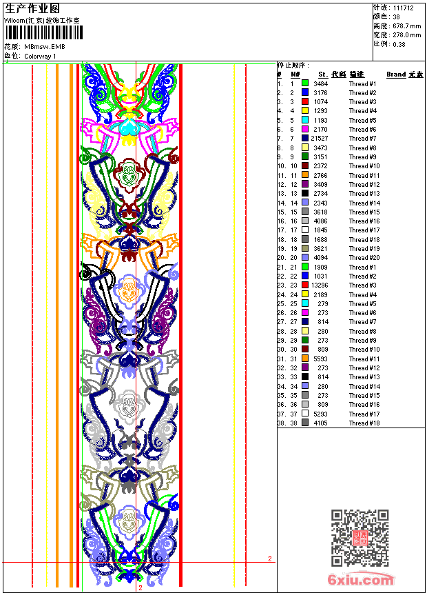 条码 emb花版参数: 大小:278.50 KB / 尺寸:278*679[毫米] / 针数:111712针 / 线色:38 / 格式:emb / 版本:7 版带文件需绣花软件方可打开,可配色打印导出各种格式或直接上机绣。如无绣花软件可下载1:1模拟效果图。 PNG图片信息:大小:2.2(MB) /图宽*高:1052x2568(像素) emb下载 1:1图下载 关闭 相关花版: 曲线 花 抽象 花 熊 简单花 花朵 简单花 亮片 珠片 简单花 裙摆 抽象 曲线 领 曲线 花 美女 几何 条码 领 简单花 胸曲线 亮片 条码 羽毛 抽象 几何 领 裤袋 领 章标 狗 领 抽象 镂空 领口 曲线 花 大花 条码