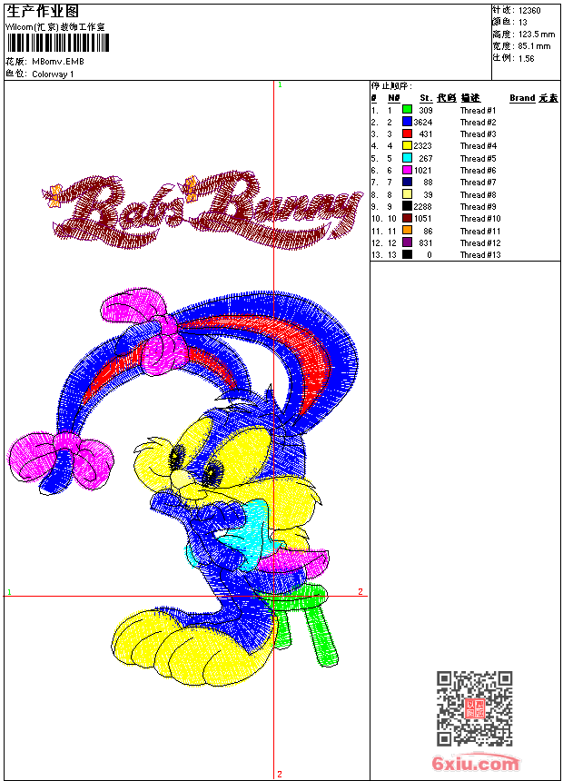兔 emb花版参数: 大小:93.00 KB / 尺寸:85*124[毫米] / 针数:12360针 / 线色:13 / 格式:emb / 版本:e2 版带文件需绣花软件方可打开,可配色打印导出各种格式或直接上机绣。如无绣花软件可下载1:1模拟效果图。 PNG图片信息:大小:0.2(MB) /图宽*高:322x468(像素) emb下载 1:1图下载 关闭 相关花版: 熊 简单花 抽象花 领 太阳 亮片 狗 珠片 条码 绳绣 花 童花 熊 美女 熊 熊 抽象 花朵 章标 羊 心形 领 珠片 飞机 曲线 亮片 条码 鹿 大花 领 熊 条码 简单 领 童花