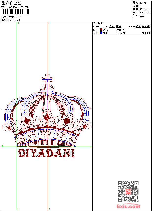 亮片 王冠 珠片 emb花版参数: 大小:81.00 KB / 尺寸:206*191[毫米] / 针数:10381针 / 线色:2 / 格式:emb / 版本:e2 版带文件需绣花软件方可打开,可配色打印导出各种格式或直接上机绣。如无绣花软件可下载1:1模拟效果图。 PNG图片信息:大小:0.4(MB) /图宽*高:780x724(像素) emb下载 1:1图下载 关闭 相关花版: 卡通 领 抽象 花朵 匹绣 熊 狗 花朵 窗帘 抽象 条码 领 条码 花朵 大花 裙摆 十字绣 几何 简单花 简单花 牛 章标 台布 曲线 亮片 珠片 曲线 熊 曲线 领 熊 领 卡通 亮片 锚 花朵