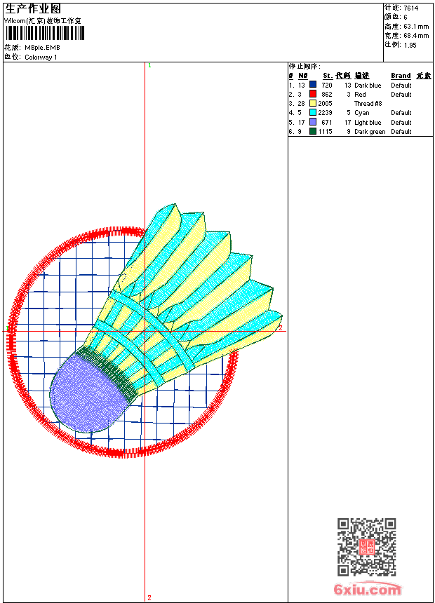 羽毛球 emb花版参数: 大小:47.50 KB / 尺寸:68*63[毫米] / 针数:7614针 / 线色:6 / 格式:emb / 版本:6 版带文件需绣花软件方可打开,可配色打印导出各种格式或直接上机绣。如无绣花软件可下载1:1模拟效果图。 PNG图片信息:大小:0.1(MB) /图宽*高:259x239(像素) emb下载 1:1图下载 关闭 相关花版: 熊 裙摆 领 简单花 亮片 珠片 简单花 简单花 几何 简单花 女孩 裙摆 裙摆 条码 裙摆 裙摆 羊 领 老虎 蝴蝶 简单花 老鼠 苹果 人物 亮片 美人鱼 珠片 花朵 大花 窗帘 亮片 字母 狗 绳绣 匹绣 卡通
