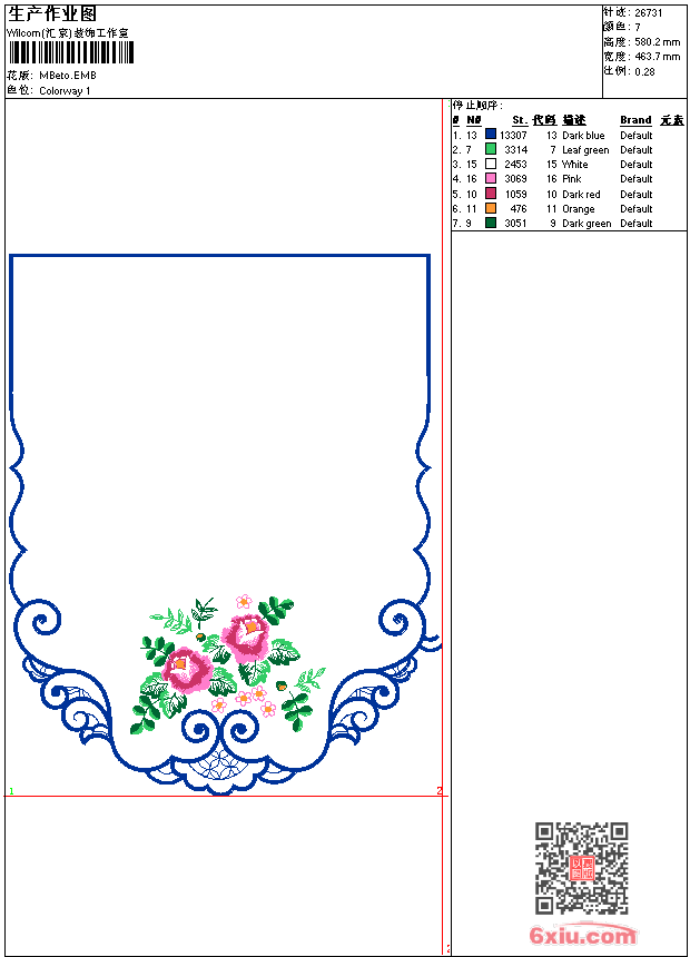 衣摆边花 emb花版参数: 大小:174.00 KB / 尺寸:464*580[毫米] / 针数:26731针 / 线色:7 / 格式:emb / 版本:7 版带文件需绣花软件方可打开,可配色打印导出各种格式或直接上机绣。如无绣花软件可下载1:1模拟效果图。 PNG图片信息:大小:0.9(MB) /图宽*高:1754x2195(像素) emb下载 1:1图下载 关闭 相关花版: 字母 朵花 马 斑马 领条 抽象 简单花 条码 曲线 藤花 条码 亮片 珠片 绳绣 亮片 蜡烛 裤脚 童花 领 十字绣 领 领 亮片 珠片 绳绣 简单花 亮片 珠片 裤 鹰 翅膀 章仔 字母 抽象 领口 领 亮片 珠片 裤 猫 匹绣 条码 匹绣 花条 童 猫 狮标 章仔