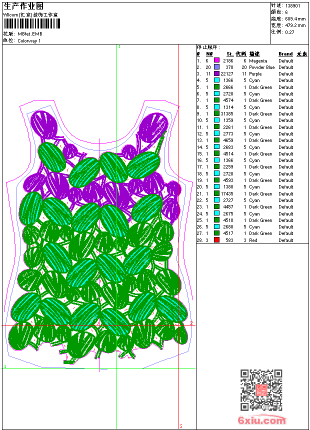 整幅 背心 emb花版参数: 大小:657.50 KB / 尺寸:479*689[毫米] / 针数:138901针 / 线色:6 / 格式:emb / 版本:9 版带文件需绣花软件方可打开,可配色打印导出各种格式或直接上机绣。如无绣花软件可下载1:1模拟效果图。 PNG图片信息:大小:6.1(MB) /图宽*高:1813x2608(像素) emb下载 1:1图下载 关闭 相关花版: 前幅 抽象 古典 亮片 领 心形 汽车 水果 菠萝 条码 曲线 衣角 卡通 小孩 虫 瓢虫 鱼 条码 匹绣 衣摆 翅膀 蛇 剑 条码 衣摆边花 字母 朵花 马 斑马 领条 抽象 简单花 条码 曲线 藤花 条码 亮片 珠片 绳绣 亮片 蜡烛