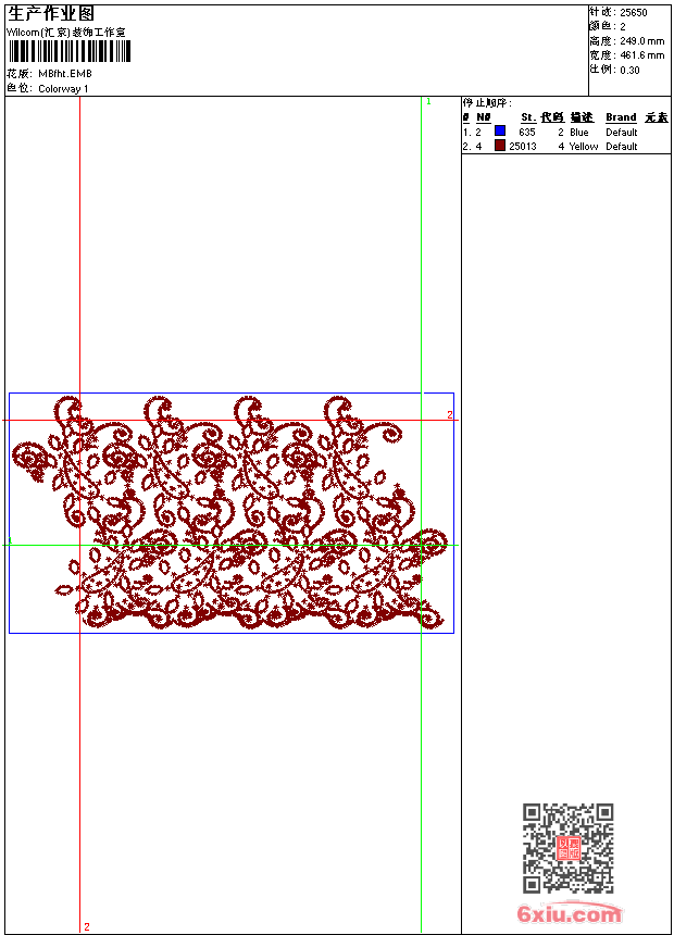 条码 emb花版参数: 大小:182.50 KB / 尺寸:462*249[毫米] / 针数:25650针 / 线色:2 / 格式:emb / 版本:e2 版带文件需绣花软件方可打开,可配色打印导出各种格式或直接上机绣。如无绣花软件可下载1:1模拟效果图。 PNG图片信息:大小:1.0(MB) /图宽*高:1746x942(像素) emb下载 1:1图下载 关闭 相关花版: 桌布 抽象 整幅 背心 条码 字母 易拉罐 条码 亮片 条码 前幅 牡丹花 亮片 领 整幅 背心 前幅 抽象 古典 亮片 领 心形 汽车 水果 菠萝 条码 曲线 衣角 卡通 小孩 虫 瓢虫 鱼 条码 匹绣 衣摆 翅膀 蛇 剑 条码 衣摆边花 字母 朵花 马 斑马