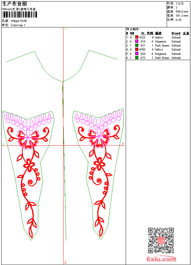 裤花 emb花版参数: 大小:108.50 KB / 尺寸:381*600[毫米] / 针数:11215针 / 线色:3 / 格式:emb / 版本:e2 版带文件需绣花软件方可打开,可配色打印导出各种格式或直接上机绣。如无绣花软件可下载1:1模拟效果图。 PNG图片信息:大小:0.6(MB) /图宽*高:1443x2269(像素) emb下载 1:1图下载 关闭 相关花版: 简单花 圆 狮标 亮片 领 珠片 中东 领 花条 米奇 抽象 字母 kitty 亮片 简单花 简单花 前幅 条 童花 条码 亮片 裤花 章仔 亮片 花条 裙条 条码 鸟 匹绣 袖 抽象 曲线 抽象 亮片 蜻蜓 纸牌 鳄鱼 亮片 条码 条码 横条