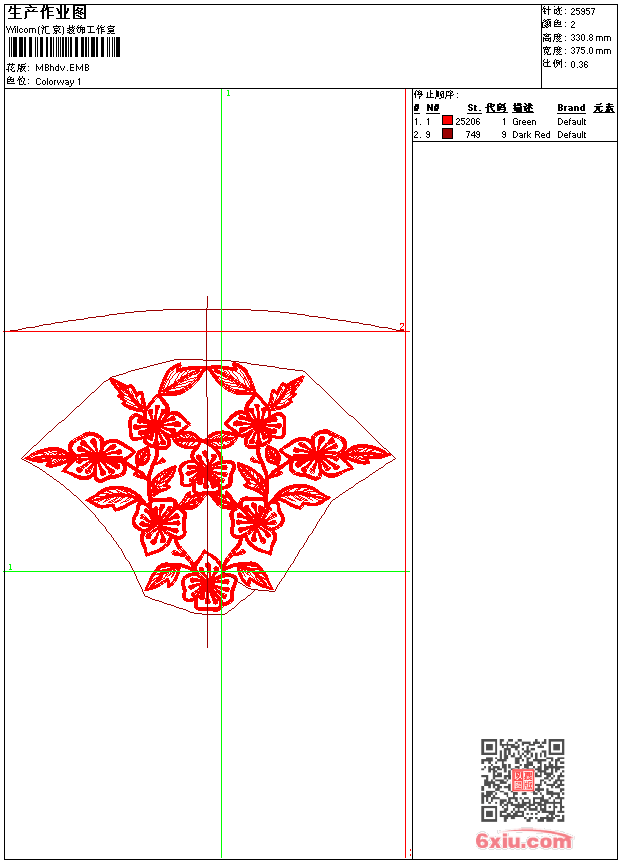 简单花 emb花版参数: 大小:165.00 KB / 尺寸:375*331[毫米] / 针数:25957针 / 线色:2 / 格式:emb / 版本:e2 版带文件需绣花软件方可打开,可配色打印导出各种格式或直接上机绣。如无绣花软件可下载1:1模拟效果图。 PNG图片信息:大小:0.7(MB) /图宽*高:1419x1252(像素) emb下载 1:1图下载 关闭 相关花版: 亮片 裤条 简笔花 玫瑰花 鞋 卡通 条码 整幅 前幅 复杂 领 家纺 条码 亮片 蝴蝶 珠片 裤 简单花 衣角 花条 亮片 蝴蝶 花 条码 雪花 玫瑰花 鹿 亮片 珠片 朵花 猪牛羊 整幅 前幅 复杂 条码 领 裤花 简单花 圆 狮标 亮片 领 珠片 中东 领 花条
