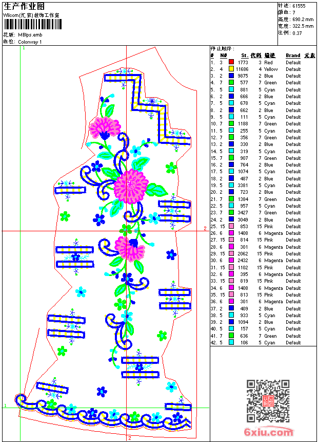 整幅 衣 emb花版参数: 大小:362.50 KB / 尺寸:322*690[毫米] / 针数:61555针 / 线色:7 / 格式:emb / 版本:8 版带文件需绣花软件方可打开,可配色打印导出各种格式或直接上机绣。如无绣花软件可下载1:1模拟效果图。 PNG图片信息:大小:1.4(MB) /图宽*高:1220x2611(像素) emb下载 1:1图下载 关闭 相关花版: 花条 匹绣 亮片 kitty 珠片 童 抽象 曲线 抽象 花条 亮片 简单花珠片 台布 台布 曲线花 骷髅 花朵 简单花 字母 米奇 条码 简单花 条码 亮片 简单珠片 台布 条花 章标 简单花 绳绣 壁画 匹绣 对称花 衣边 领 亮片 珠片 整幅 亮片 裤珠片
