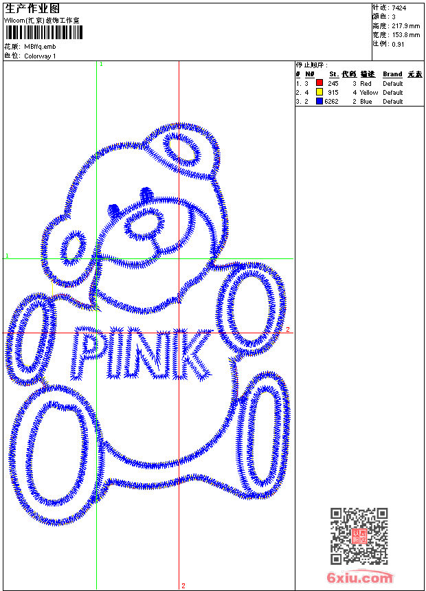 熊 emb花版参数: 大小:122.50 KB / 尺寸:154*218[毫米] / 针数:7424针 / 线色:3 / 格式:emb / 版本:9 版带文件需绣花软件方可打开,可配色打印导出各种格式或直接上机绣。如无绣花软件可下载1:1模拟效果图。 PNG图片信息:大小:0.3(MB) /图宽*高:582x825(像素) emb下载 1:1图下载 关闭 相关花版: 鹿标 十字绣领 鹰标USA 鱼形吉祥花朵 亮片 蝴蝶珠片 美女 裙摆条 虎头 裙藤条 花条 曲线 整幅圈圈 心形 章标 parmaac 亮片 珠片花条 曲线 碎花 米奇 章标 亮片 蝴蝶珠片 鸟 曲线 树叶 亮片 衣前幅 衣前幅 领 U领 汽车章 几何特种绣 简单花