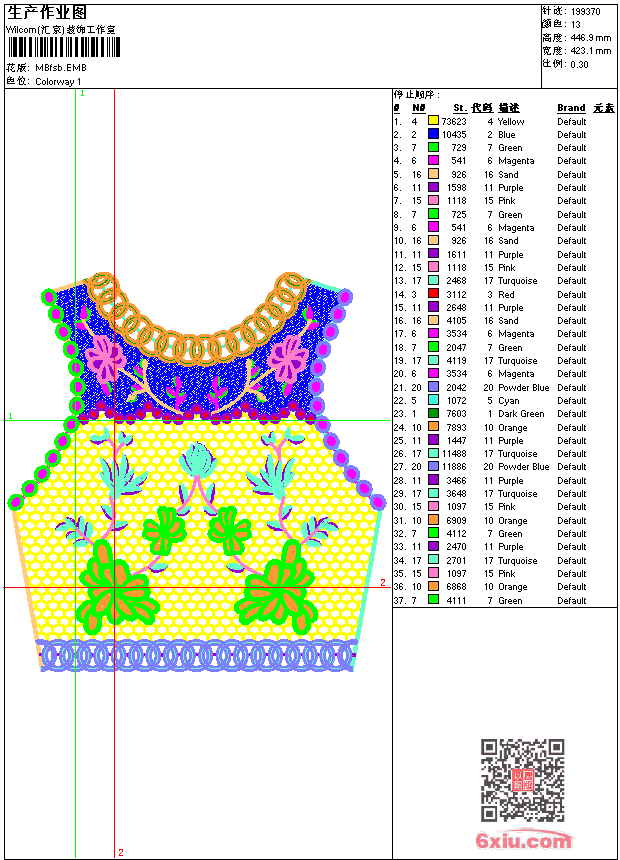 满幅背心 emb花版参数: 大小:735.00 KB / 尺寸:423*447[毫米] / 针数:199370针 / 线色:13 / 格式:emb / 版本:9 版带文件需绣花软件方可打开,可配色打印导出各种格式或直接上机绣。如无绣花软件可下载1:1模拟效果图。 PNG图片信息:大小:3.5(MB) /图宽*高:1601x1691(像素) emb下载 1:1图下载 关闭 相关花版: 简单花 字母 章标 亮片 蝴蝶 珠片 方形装饰 领 亮片 领 裤袋 线条 简单花 简单线条 龙 雕孔 家纺 熊 鹿标 十字绣领 鹰标USA 鱼形吉祥花朵 亮片 蝴蝶珠片 美女 裙摆条 虎头 裙藤条 花条 曲线 整幅圈圈 心形 章标 parmaac 亮片 珠片花条 曲线 碎花
