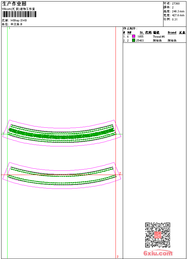 条码 emb花版参数: 大小:398.50 KB / 尺寸:428*248[毫米] / 针数:27360针 / 线色:2 / 格式:emb / 版本:2006 版带文件需绣花软件方可打开,可配色打印导出各种格式或直接上机绣。如无绣花软件可下载1:1模拟效果图。 PNG图片信息:大小:0.3(MB) /图宽*高:1618x940(像素) emb下载 1:1图下载 关闭 相关花版: 大花裙 鸟 大花 绳绣满幅 线条 衣摆 亮片 裤蝴蝶珠片 家纺 绳绣蝴蝶 亮片 裤蝴蝶珠片 猫头鹰 亮片 抽象花 满幅背心 胸襟领 十字标 条码方形 条码 小鸡 鹿标 熊 简单藤花 它它米花瓣 亮片 米奇米妮珠片 简单条 熊 简单花 豹 满幅背心 简单花 字母 章标 亮片 蝴蝶 珠片