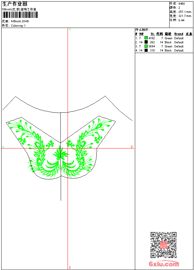对称花 emb花版参数: 大小:73.50 KB / 尺寸:322*257[毫米] / 针数:8460针 / 线色:2 / 格式:emb / 版本:9 版带文件需绣花软件方可打开,可配色打印导出各种格式或直接上机绣。如无绣花软件可下载1:1模拟效果图。 PNG图片信息:大小:0.3(MB) /图宽*高:1217x973(像素) emb下载 1:1图下载 关闭 相关花版: 翅膀插针 几何形状 裙子的摆 绳绣领子 领子 简单线条 简单花朵 领子 条码 衣领 男符号章仔 地毯台布复杂 亮片 条码 绳子绣花 老鹰徽章标志 条码 徽章标志武士剑 线条花朵 骑马章仔男保罗polo 奥特曼卡通 童装裙子 卡通变色龙蜥蜴 胸前漂亮的花朵 亮片 蝴蝶珠片裤子 童装字母 sweet 亮片 珠片简单花 窗帘 匹绣 狮子男章标 亮片 珠片裤子花