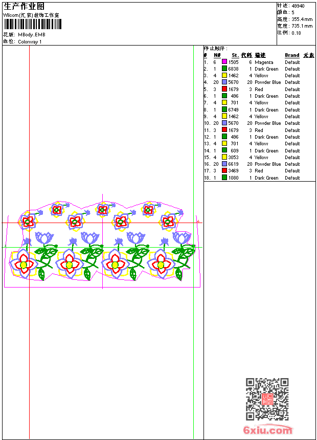 童装裙子摆 emb花版参数: 大小:309.50 KB / 尺寸:735*355[毫米] / 针数:49940针 / 线色:5 / 格式:emb / 版本:9 版带文件需绣花软件方可打开,可配色打印导出各种格式或直接上机绣。如无绣花软件可下载1:1模拟效果图。 PNG图片信息:大小:1.6(MB) /图宽*高:2781x1345(像素) emb下载 1:1图下载 关闭 相关花版: 简单玫瑰花 抽象花朵 抽象几何图案 毯子台布 线条 亮片 斑马亮片 蝴蝶 藤条花朵 条码 海盗奇幻世界徽章标志 圣诞梅花鹿 漂亮的花朵方形满绣装饰 兔子 中国风传统吉祥几何 条码 亮片 珠片面具皇冠 简单的童装花朵 男孩女孩卡通 猴子贴布 苹果贴布 卡通狗 珠片蝴蝶 中国吉祥的圆圈 兔子卡通 宠物狗柯基 亮片 珠片蝴蝶裤子 藤状的花朵雕孔 对称花 翅膀插针 几何形状