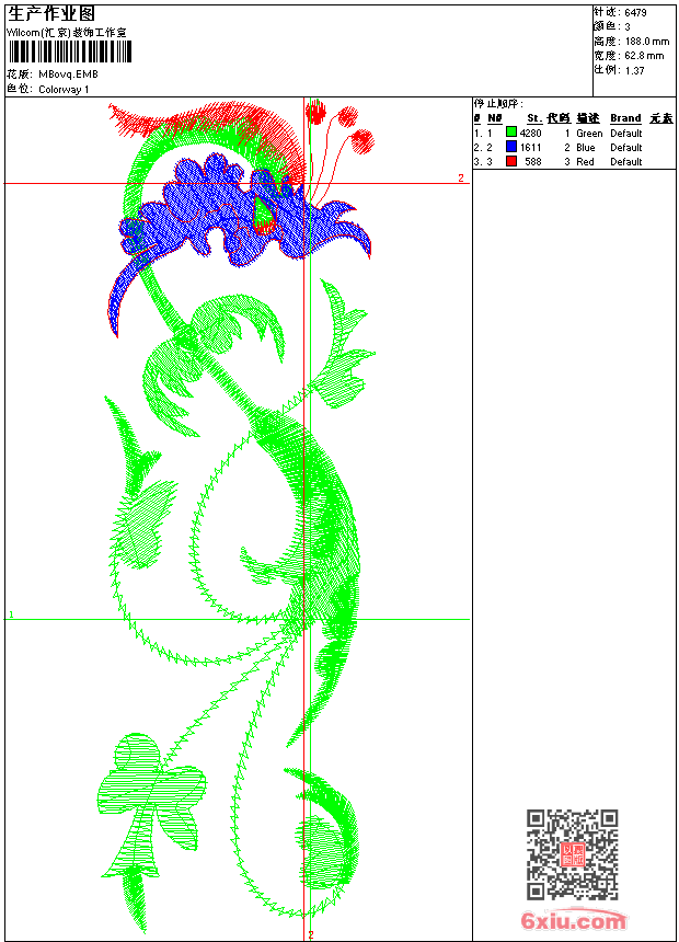 牵牛喇叭花 emb花版参数: 大小:43.00 KB / 尺寸:63*188[毫米] / 针数:6479针 / 线色:3 / 格式:emb / 版本:6 版带文件需绣花软件方可打开,可配色打印导出各种格式或直接上机绣。如无绣花软件可下载1:1模拟效果图。 PNG图片信息:大小:0.2(MB) /图宽*高:238x712(像素) emb下载 1:1图下载 关闭 相关花版: 条码 童装小花 衣角 亮片 字母亮片卡通 亮片 亮片蝴蝶裤子 简单花条 条码 线条 对称曲线 条码 简单小花朵 裙摆的条码 圆圈匹绣 亮片 满幅绣短裙子 裙子摆条码 条码 简单条 抽象曲线复杂标志 衣领 米老鼠 雕孔绣 简单叶子 袖子 恐龙音乐卡通 中国风鲤鱼 简单的花条 藤状花条 台布桌布 线条 鸟翅膀
