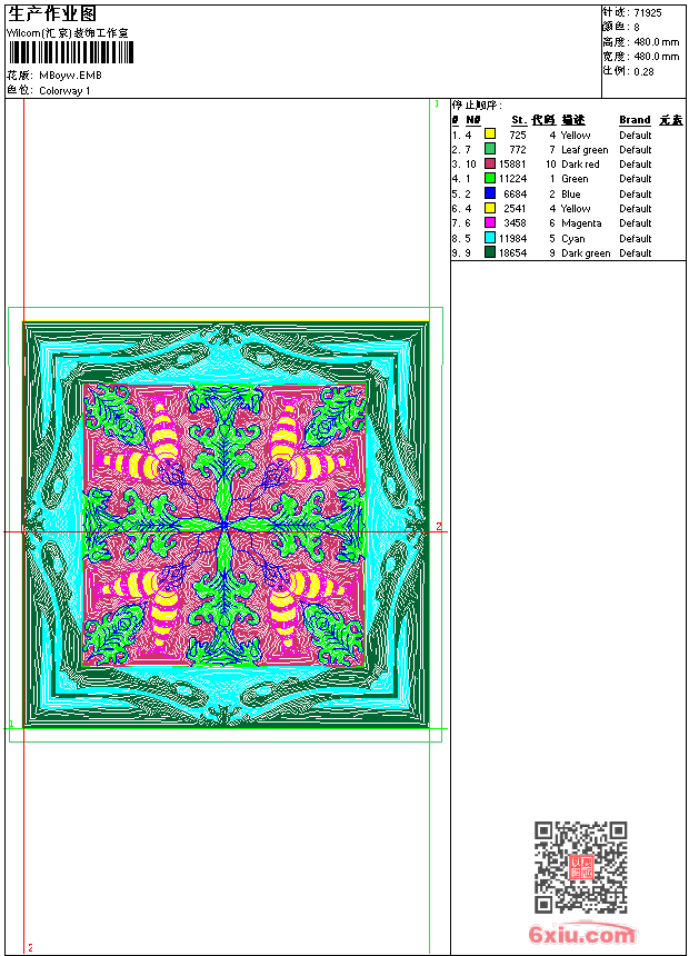 复杂装饰满绣图案 emb花版参数: 大小:407.00 KB / 尺寸:480*480[毫米] / 针数:71925针 / 线色:8 / 格式:emb / 版本:7 版带文件需绣花软件方可打开,可配色打印导出各种格式或直接上机绣。如无绣花软件可下载1:1模拟效果图。 PNG图片信息:大小:3.6(MB) /图宽*高:1816x1816(像素) emb下载 1:1图下载 收藏本图 关闭 相关花版: 亮片 裤子珠片花 线条雕孔 领子 字母标志闪电 亮片 绳子绣花 多色水溶衣领 亮片 抽象线条裤子 抽象的圆圈 简单花朵 简单花朵 方形花朵条 亮片 亮片花朵 童装小藤花 眼睛一样的抽象符号 牵牛喇叭花 条码 童装小花 衣角 亮片 字母亮片卡通 亮片 亮片蝴蝶裤子 简单花条 条码 线条 对称曲线 条码 简单小花朵 裙摆的条码 圆圈匹绣 亮片 满幅绣短裙子 裙子摆条码