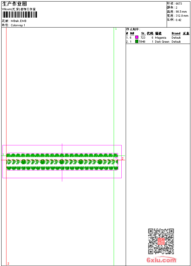 条码 emb花版参数: 大小:28.50 KB / 尺寸:313*98[毫米] / 针数:6673针 / 线色:2 / 格式:emb / 版本:9 版带文件需绣花软件方可打开,可配色打印导出各种格式或直接上机绣。如无绣花软件可下载1:1模拟效果图。 PNG图片信息:大小:0.1(MB) /图宽*高:1184x373(像素) emb下载 1:1图下载 关闭 相关花版: 地毯台布桌布 简单时装花 裤子花条 花条 菊花 领子 简单花 花环 圆圈匹绣 跟小鸟说话的梅花鹿 衣领 豹子头 地毯桌布 皇冠线条 奥林匹克标志老鹰 线条衣领 亮片 多色大嘴巴亮片 骷髅翅膀徽章标志 贴布绣小狗字母 简单花朵 特种绣 小熊 亮片 裤袋的小花朵 抽象裙子 小兔子 多色水溶领 亮片 多色亮片米老鼠 漂亮的牡丹花 黄色花朵 亮片 亮片皇冠