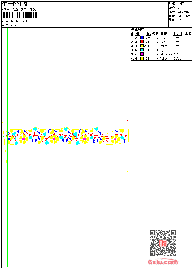 条码 emb花版参数: 大小:38.00 KB / 尺寸:233*92[毫米] / 针数:4917针 / 线色:5 / 格式:emb / 版本:7 版带文件需绣花软件方可打开,可配色打印导出各种格式或直接上机绣。如无绣花软件可下载1:1模拟效果图。 PNG图片信息:大小:0.1(MB) /图宽*高:881x350(像素) emb下载 1:1图下载 关闭 相关花版: 翅膀 卡通小孩 卡通大嘴猴 特种绣 漂亮的裤子花 抽象猫头鹰 简单的大花朵 抽象的几何 亮片 亮片时髦女郎 简单花朵 特种绣毛巾绣 孔雀花边 亮片 线条珠片裤子 窗帘 条码 条码 地毯台布桌布 简单时装花 裤子花条 花条 菊花 领子 简单花 花环 圆圈匹绣 跟小鸟说话的梅花鹿 衣领 豹子头 地毯桌布 皇冠线条