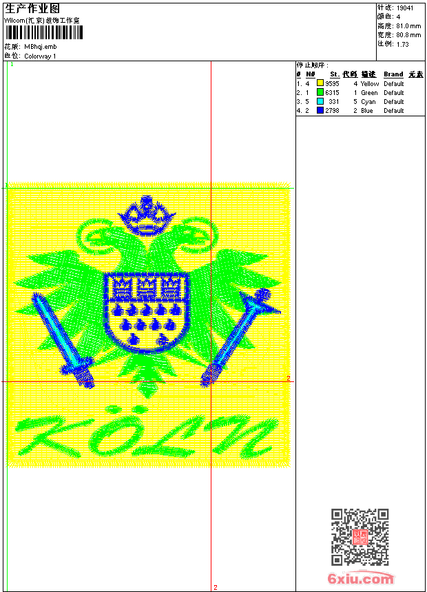 徽章标志老鹰 emb花版参数: 大小:3.31 MB / 尺寸:81*81[毫米] / 针数:19041针 / 线色:4 / 格式:emb / 版本:9 版带文件需绣花软件方可打开,可配色打印导出各种格式或直接上机绣。如无绣花软件可下载1:1模拟效果图。 PNG图片信息:大小:0.2(MB) /图宽*高:306x307(像素) emb下载 1:1图下载 收藏本图 关闭 相关花版: 徽章标志 骷髅 衣领 装饰特种绣 简单的花条 米老鼠跟蜘蛛 亮片 多色亮片心形 卡通贴布猫 简单花朵 特种绣 蜡烛台布 条码 线条大花朵玫瑰花 铲子一样的植物 复杂的后背领子 简单的线条 简单小花朵 特种绣 线条翅膀 裙子边 衣领 樱桃贴布 格子衣领抽象 装饰台布 台布 对称的花环 裙子的边 漂亮的小菊花 古典装饰圆圈 亮片 简单喇叭花