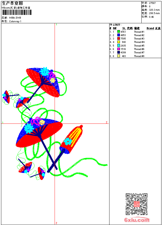抽象的伞 emb花版参数: 大小:86.00 KB / 尺寸:300*320[毫米] / 针数:27587针 / 线色:8 / 格式:emb / 版本:7 版带文件需绣花软件方可打开,可配色打印导出各种格式或直接上机绣。如无绣花软件可下载1:1模拟效果图。 PNG图片信息:大小:0.9(MB) /图宽*高:1133x1212(像素) emb下载 1:1图下载 关闭 相关花版: 对称线条 梅花鹿 漂亮的花朵 衣领 毛巾绣特种绣 对称 亮片 两只企鹅亮片 衣领 小猪 领子 童装小线条 裙子的边 领子 条码 条码 领子 抽象的袖子 裙子的摆 条码 花朵 简单小花 简单线条 亮片 领子 条码 徽章标志 抽象漂亮的果实树 台布 亮片 蝴蝶花朵 简单花条 条码