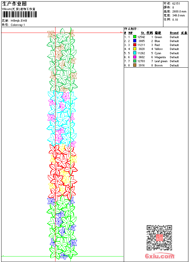 满绣花朵 emb花版参数: 大小:164.50 KB / 尺寸:349*2600[毫米] / 针数:62151针 / 线色:8 / 格式:emb / 版本:6 版带文件需绣花软件方可打开,可配色打印导出各种格式或直接上机绣。如无绣花软件可下载1:1模拟效果图。 PNG图片信息:大小:3.5(MB) /图宽*高:1321x9835(像素) emb下载 1:1图下载 关闭 相关花版: 两只小兔子 简单花朵 送礼物的圣诞老人 袖子 玩雪橇的小熊 条码 简单花 衣领 条码 条码 领子 条码 衣领 条码 梅花鹿雪人 京剧脸谱 亮片 衣领 条码 亮片 裤子亮片花 抽象的线条领 袖子 领子 领子 条码 简单花 小贝壳一样的花 裙子的边 简单的童装 漂亮的小花朵 亮片 复杂的装饰图案