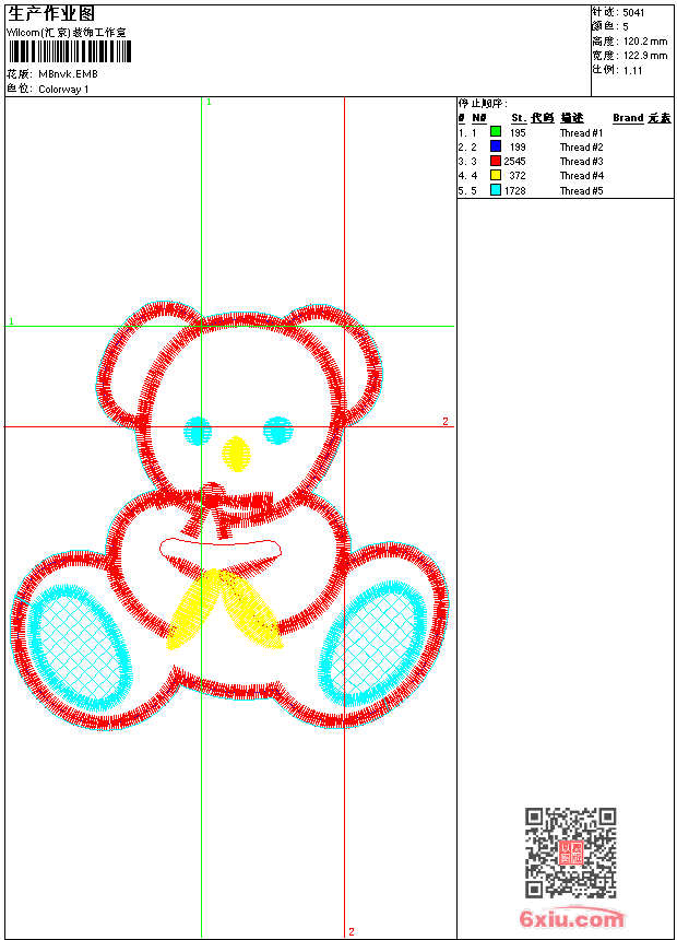 卡通熊 emb花版参数: 大小:26.50 KB / 尺寸:123*120[毫米] / 针数:5041针 / 线色:5 / 格式:emb / 版本:7 版带文件需绣花软件方可打开,可配色打印导出各种格式或直接上机绣。如无绣花软件可下载1:1模拟效果图。 PNG图片信息:大小:0.2(MB) /图宽*高:465x455(像素) emb下载 1:1图下载 关闭 相关花版: 条码 衣领 衣领 亮片 亮片樱桃 漂亮的牡丹花 四个对称方向的方形 有翅膀的狮子 条码 漂亮的花朵 简单花 简单花 卡通熊贴布 吉祥的圆圈 卡通贴布大象 弯的条码 弯的条码 卡通动物 蝙蝠侠卡通 狗snoopy 条码 米老鼠 亮片 亮片小花朵 漂亮的花朵 衣领 多色水溶领 线条 亮片 亮片猫 抽象音乐吉他 亮片 亮片面具狐狸 简单的花