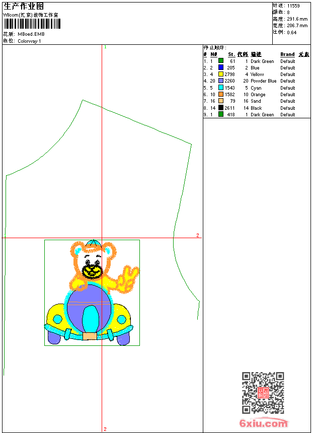 卡通熊开汽车 emb花版参数: 大小:71.50 KB / 尺寸:207*292[毫米] / 针数:11559针 / 线色:8 / 格式:emb / 版本:9 版带文件需绣花软件方可打开,可配色打印导出各种格式或直接上机绣。如无绣花软件可下载1:1模拟效果图。 PNG图片信息:大小:0.2(MB) /图宽*高:782x1103(像素) emb下载 1:1图下载 关闭 相关花版: 竖条 中国风龙吉祥 简单小花 抽象的圆圈 亮片 亮片蝴蝶 两只小花朵 跳舞的小女孩 亮片横条 横条 弯弯的条 卡通熊贴布 卡通熊贴布 条码 卡通熊自由女神 简单线条 米老鼠 裙摆 荷花 抽烟的牛仔人物 抽象竖条码 抽象的排列 中国风吉祥图案 衣领 卡通熊贴布 弯弯的条码 复杂的大花牡丹花 简单漂亮的花朵 猫卡通贴布 衣领 亮片 裤子的花型