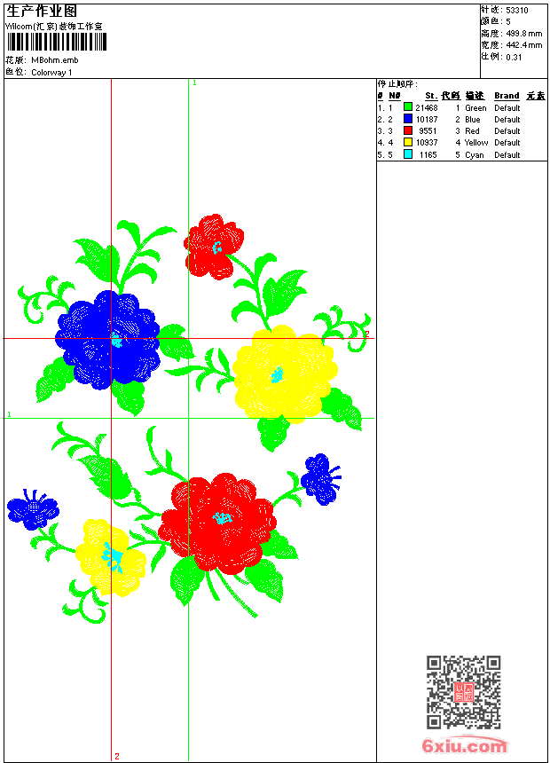 漂亮的花朵 emb花版参数: 大小:171.50 KB / 尺寸:442*500[毫米] / 针数:53310针 / 线色:5 / 格式:emb / 版本:6 版带文件需绣花软件方可打开,可配色打印导出各种格式或直接上机绣。如无绣花软件可下载1:1模拟效果图。 PNG图片信息:大小:2.4(MB) /图宽*高:1674x1891(像素) emb下载 1:1图下载 关闭 相关花版: 横条 抽象的花朵 线条花朵 简单花朵 花瓶 水草一样的郁金香 台布地毯 衣领 横条 米老鼠 猫咪 裙摆 天线宝宝 古代的马车 漂亮抽象的花朵 横条 简单花朵 几何图案 线条衣领 藤条 竖条 卡通熊贴足球 卡通熊开汽车 竖条 中国风龙吉祥 简单小花 抽象的圆圈 亮片 亮片蝴蝶 两只小花朵 跳舞的小女孩