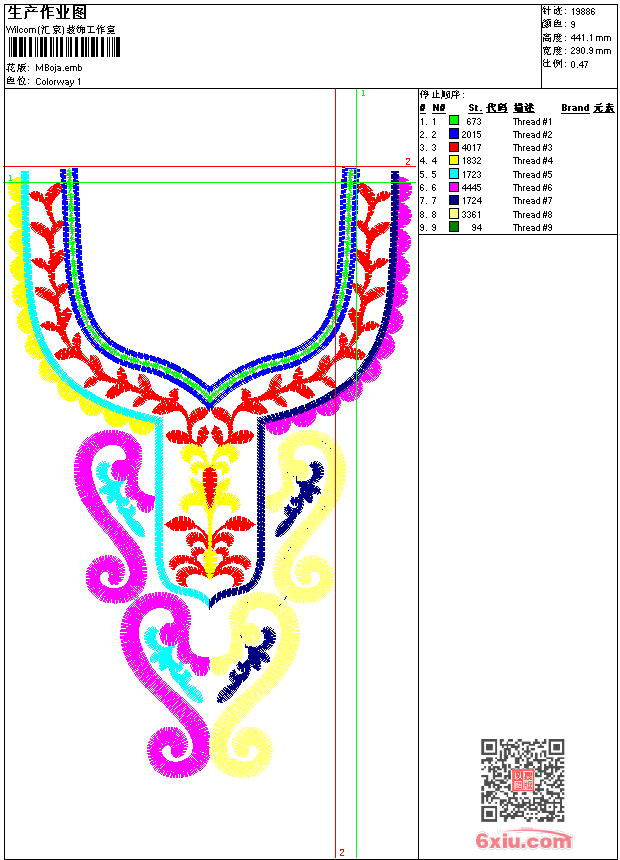 衣领 emb花版参数: 大小:76.00 KB / 尺寸:291*441[毫米] / 针数:19886针 / 线色:9 / 格式:emb / 版本:7 版带文件需绣花软件方可打开,可配色打印导出各种格式或直接上机绣。如无绣花软件可下载1:1模拟效果图。 PNG图片信息:大小:1.2(MB) /图宽*高:1101x1669(像素) emb下载 1:1图下载 关闭 相关花版: 卡通猫 亮片 线条 横条 衣领 米老鼠 衣领 简单花 衣领 亮片 衣领 鞋子花 匹绣 漂亮的花朵 横条 抽象的花朵 线条花朵 简单花朵 花瓶 水草一样的郁金香 台布地毯 衣领 横条 米老鼠 猫咪 裙摆 天线宝宝 古代的马车 漂亮抽象的花朵 横条 简单花朵 几何图案