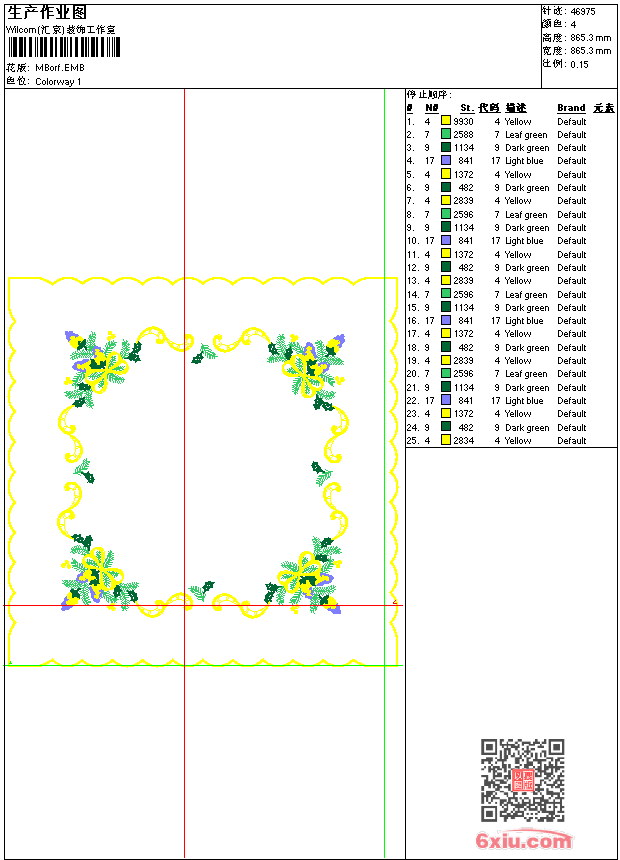 地毯台布 emb花版参数: 大小:320.00 KB / 尺寸:865*865[毫米] / 针数:46975针 / 线色:4 / 格式:emb / 版本:7 版带文件需绣花软件方可打开,可配色打印导出各种格式或直接上机绣。如无绣花软件可下载1:1模拟效果图。 PNG图片信息:大小:2.1(MB) /图宽*高:3274x3274(像素) emb下载 1:1图下载 关闭 相关花版: 简单的童装 卡通熊 简单花 汽车卡通 简单花 花条 裙子的摆 亮片 抽象的线条 亮片 亮片领子绳绣 横条 亮片 蝴蝶裤子亮片 亮片 抽象方形装饰 简单的花朵 窗帘 简单小花 蝴蝶 简单的小童话 带皇冠的小女孩 水草跟鱼 地毯台布 五角星 装饰方形 横条 横条 简单的大花朵 线条 瓢虫 复杂的线条图案 手提包包 线条