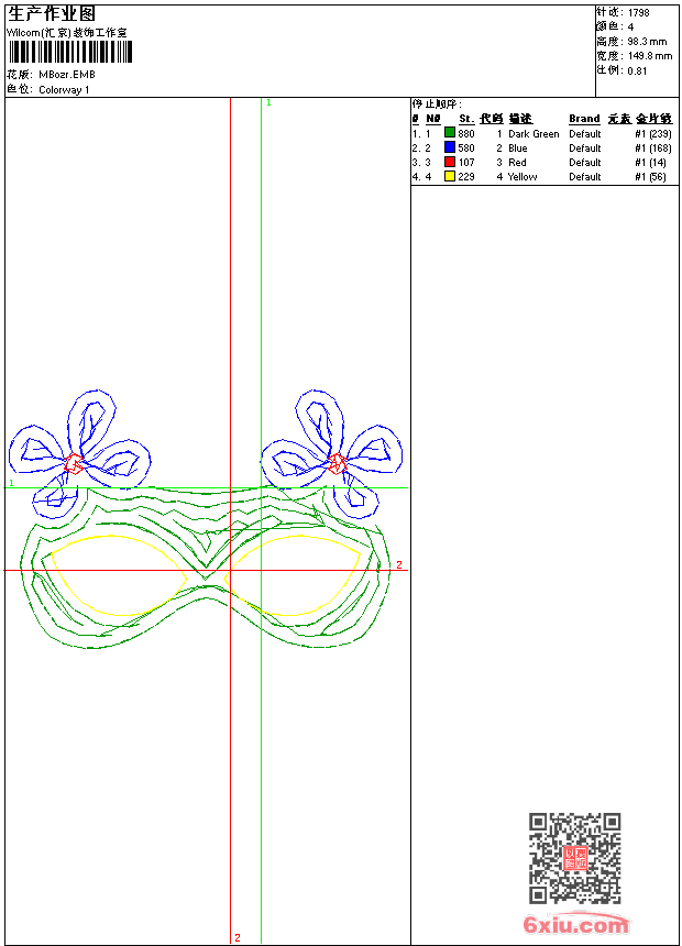 亮片 亮片面具 emb花版参数: 大小:84.50 KB / 尺寸:150*98[毫米] / 针数:1798针 / 线色:4 / 格式:emb / 版本:9 版带文件需绣花软件方可打开,可配色打印导出各种格式或直接上机绣。如无绣花软件可下载1:1模拟效果图。 PNG图片信息:大小:0.1(MB) /图宽*高:567x372(像素) emb下载 1:1图下载 关闭 相关花版: 两条竖条 线条 卡通手枪 水果南瓜 裤子的边 衣领 水溶袖子 贴布字母老鹰徽章标志 衣领 毛巾绣数字 简单的花条 简单花 花条 横条竖条 横条竖条 吉祥装饰图案 亮片 横条竖条 亮片 亮片蝴蝶裤子 卡通人物 亮片 横条竖条 横条竖条 衣服的下摆 衣领 地毯台布 简单的童装 卡通熊 简单花 汽车卡通 简单花 花条