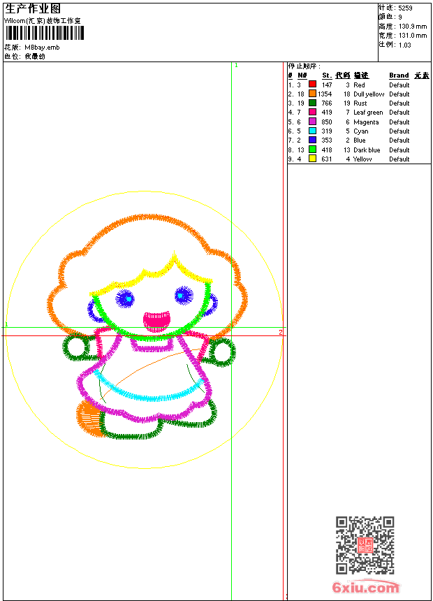 贴布女孩 emb花版参数: 大小:61.50 KB / 尺寸:131*131[毫米] / 针数:5259针 / 线色:9 / 格式:emb / 版本:7 版带文件需绣花软件方可打开,可配色打印导出各种格式或直接上机绣。如无绣花软件可下载1:1模拟效果图。 PNG图片信息:大小:0.1(MB) /图宽*高:496x496(像素) emb下载 1:1图下载 关闭 相关花版: 卡通老鼠 亮片 亮片树叶 方形的装饰 大嘴猴字母 地毯台布 大海帆船 地毯台布 卡通蘑菇 徽章字母 小猫特种秀 卡通小狗 花条 亮片 裤子的花草 亮片 裤子的花草 横条竖条 衣领 方格 简单花 复杂的玫瑰花 卡通鸭子 横条竖条 线条花草 横条竖条 亮片 线条花朵 卡通小熊 装饰 亮片 亮片线条裤子 三只骷髅 曲线 格子衣领